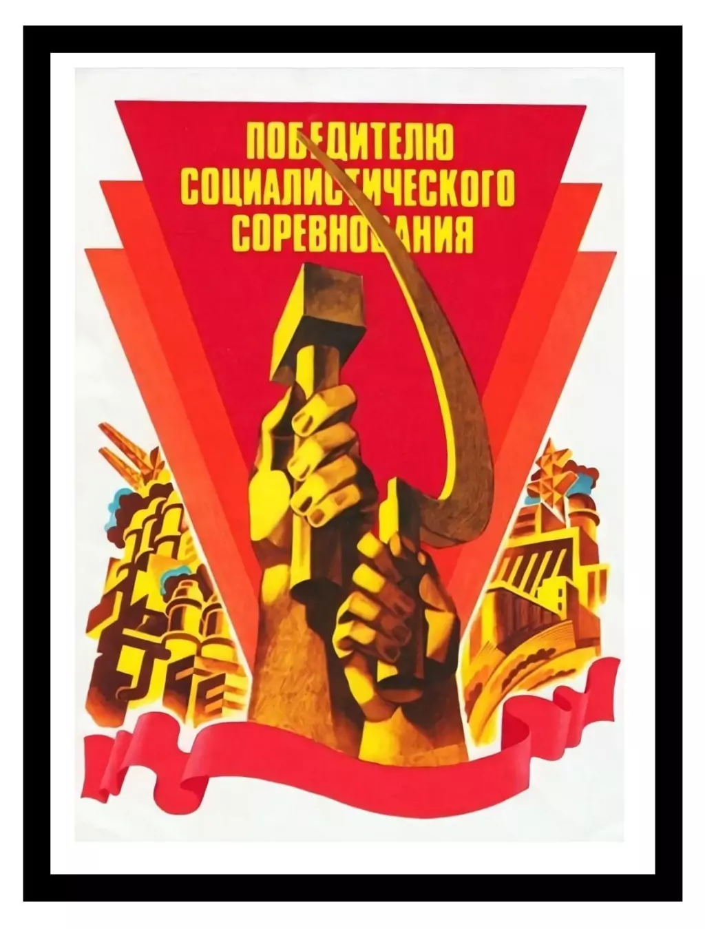 Pôster soviético. “Победителю социалистического соревнования” - “O vencedor da competição é o socialismo”