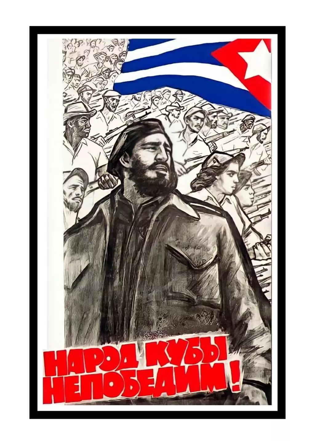 Pôster soviético de Fidel Castro, 1961. "народ кубы непобедим!" - "O povo cubano é invencível!"